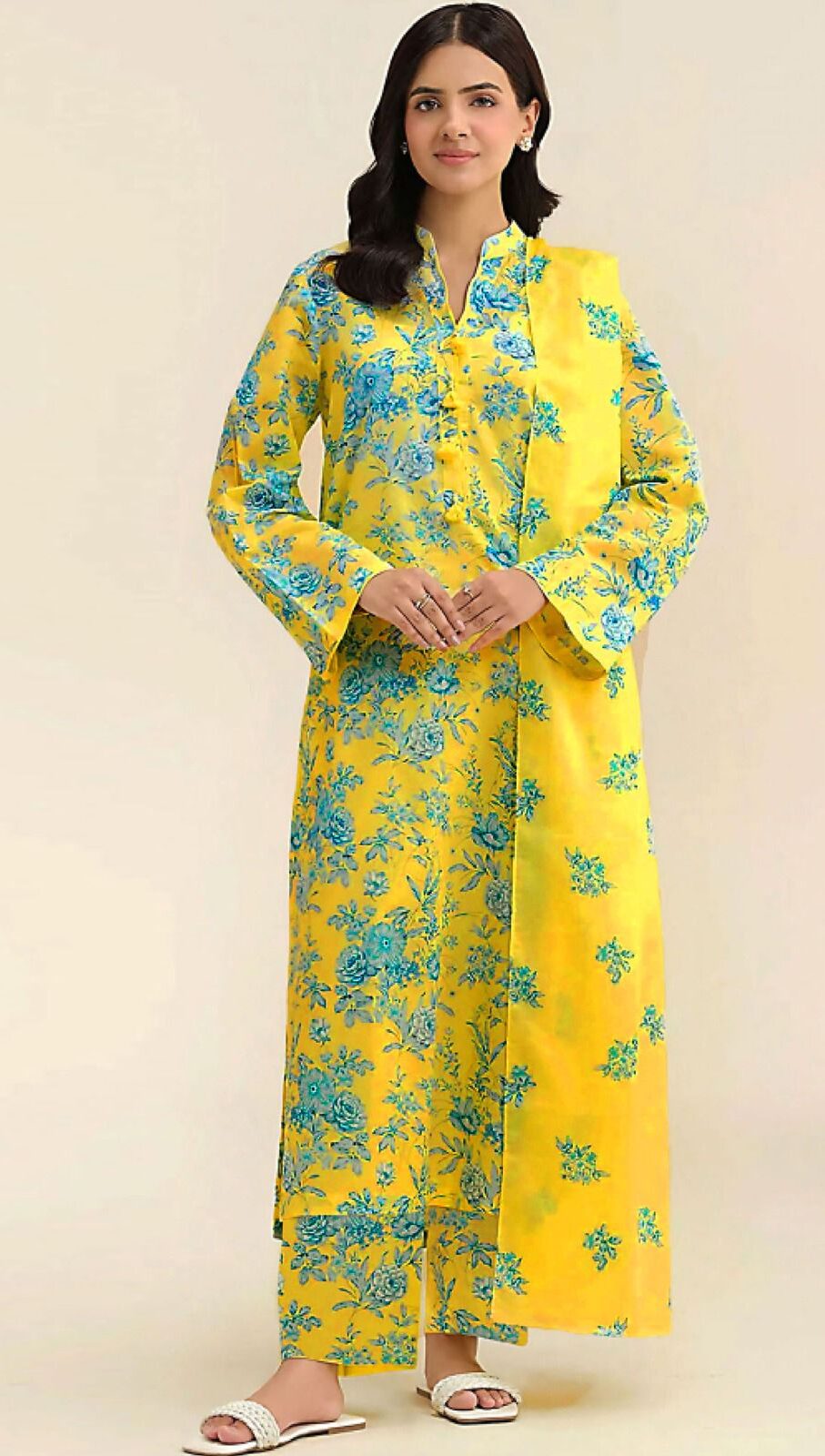Keyseria 3-Piece Digital Print Khaddar Suit — featuring a stylish printed shirt, warm shawl, and matching trouser for a graceful winter wardrobe.
