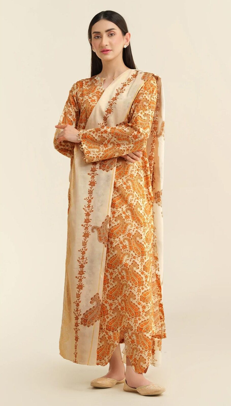 Keyseria Digital Print Khaddar 3-Piece Suit — includes a beautifully printed shirt, cozy shawl, and matching trouser for a stylish winter look.